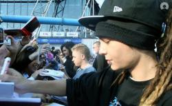 , Wat doe jij hier ?!”. Je glimlacht breed en geeft hem een knuffel. “Ik zit hier ook op hotel voor 1 of andere reden..”, zegt hij. Je bekeek hem een beetje onbegrijpend, maar lachte daarna weer fel. “Wie zijn zij?”, vraag je. Er staan 3 andere jongens achter hem te grijnzen en met elkaar te praten. “Uhm, die met zijn zwart haar is mijn 2lingbroer en die andere 2 rare zijn vrienden.”, zegt Tom. “Heee, wij zijn niet raar!”, hoor je 1 van die 2 andere zeggen. Je moet lachen en liep naast Tom door naar de 3 jongens die daar staan. Ze kijken je verbaasd aan. Als jij in een goede bui bent moet je echt iedereen leren kennen. Zal je nooit afleren. “En wie zijn julliiie?”, vraag je met een grote glimlach. Die met zn zwarte haren is cooool. Hij antwoord als eerst. “Ik ben Bill”, zegt hij. Je geeft hem een hand. Jij :” I looove your hair! Can i touch it? [a]”. Hij lacht en knikt. Je voelt even aan zijn haar . Meteen trek je je hand terug. Het voelt raar aan. Net een stekelvarken. Je moet lachen om je eigen gedachten. Net als je verder wil gaan kennismaken met de andere 2 voel je een arm om je middel. Je schrikt en kijkt naast je. Daar staat Tom dan. Met een grote glimlach op zijn gezicht. Je zal het maar zo laten. Je hebt geen zin om moeite te doen. Je loopt door naar een jongen met kort blond haar. Hij is cute! “En jij bent ?”, vraag je. “Gustav
