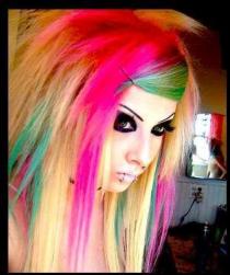 je houd wel van kleurtjes, en bent wel vrolijk (denk ik) dus staat dit kapsel je super goed. leuke en vrolijke kleurtjes zijn ook echt super om in je haar te hebben. maar pas op, als je doucht gaat de kleur er ook een beetje uit dus moet je de kleur wel bij houden, dat kan je laten doen door de kapper maar je kan zelf ook gewoon je haar verfen.