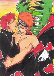 Je dacht dat iedereen naar buiten was gegaan, maar je ziet Pain samen met Sasori rustig op de bank zitten, tv te kijken ofzo.
