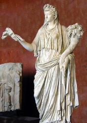 Omdat je constant voor de vruchtbare aardbodem zorgt, heb je geen tijd voor een man of dieren. Vaak draag je een kroon van korenaren op je hoofd en in je armen de hoorn des overvloeds die overloopt van vruchten.