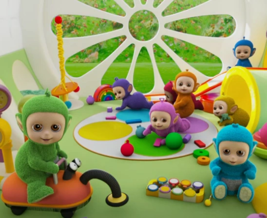 WAT. Het zijn er ook gewoon zo veel, wow. Ik tel er minstens acht, terwijl er maar vier volwassen (?) Teletubbies waren. Dit is een enorme populatiegroei in Teletubbieland, dus ik hoop maar dat Teletubbieautoriteiten een plan hebben om toekomstige overbevolking tegen te gaan als deze trend zich doorzet.
