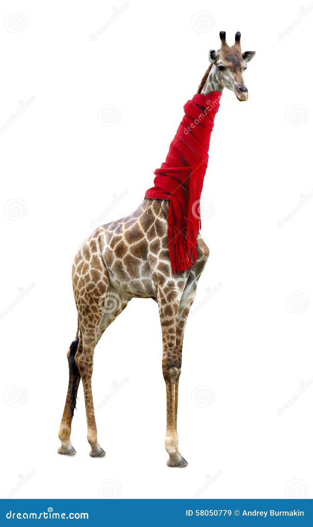 Een giraf met een sjaaltje om